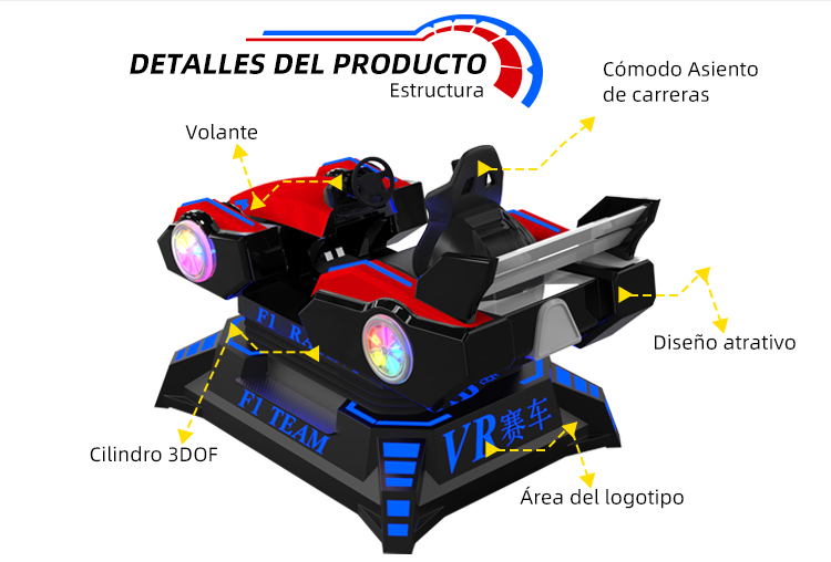 El simulador de carreras es el último desarrollo de productos de coches de carreras de realidad virtual para el mercado infantil y de adultos, que consiste en un coche de aspecto moderno y atractivo, un casco giratorio de 360 HD y una pantalla LCD de 19 pulgadas para la visualización, una plataforma de movimiento eléctrica y juegos exclusivos de alta definición que incluyen una gran variedad de modos y mapas para la competición. Se trata de un nuevo equipamiento simulado para el coche, que le permitirá sumergirse y no poder parar.